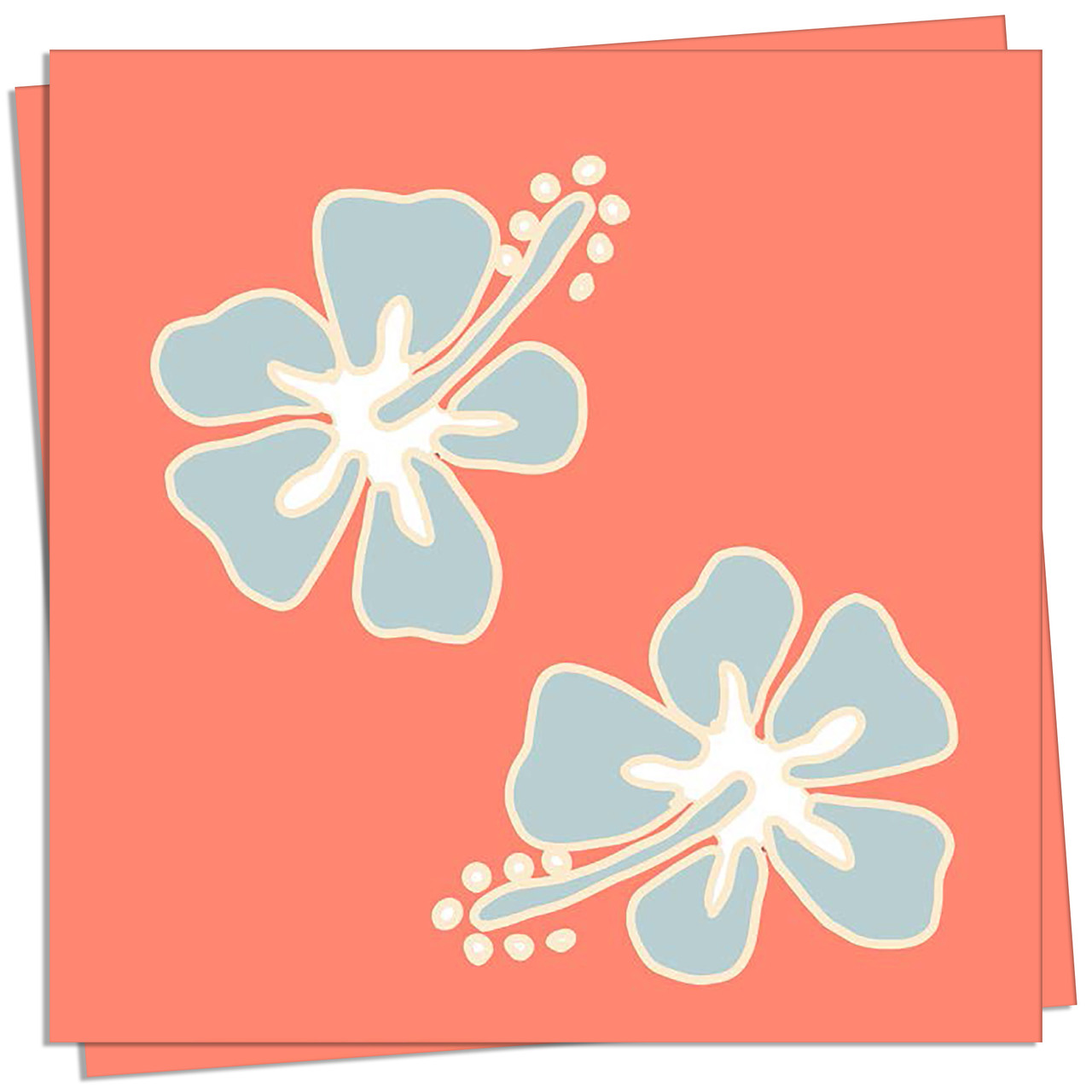 Hibiscus Corail Dinner Napkin - Offer your guests a tropical getaway with this collection highlighting the hibiscus, an emblematic island flower. The design pairs the vitality of coral orange with the softness of sky blue, perfect for creating a summery and exotic table setting.