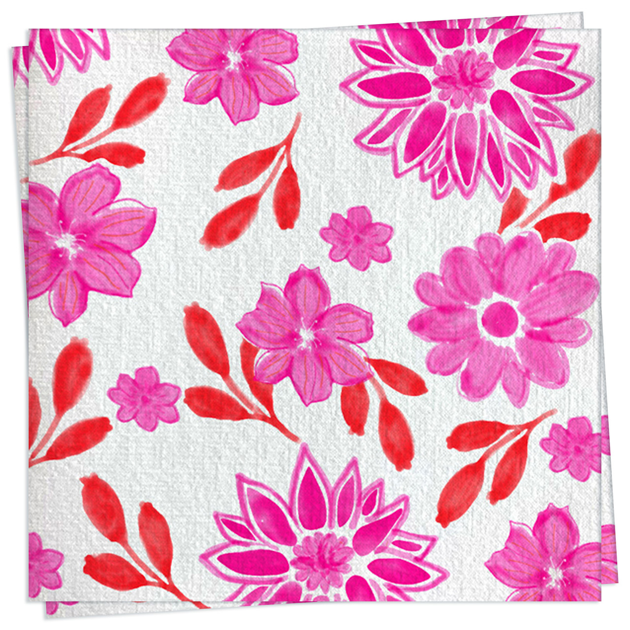 Maxi Fleur Rose Cocktail Napkin - Celebrate the return of spring with a burst of wild flowers! This vibrant design blends radiant pinks and energizing oranges, bringing energy and freshness to your table settings.