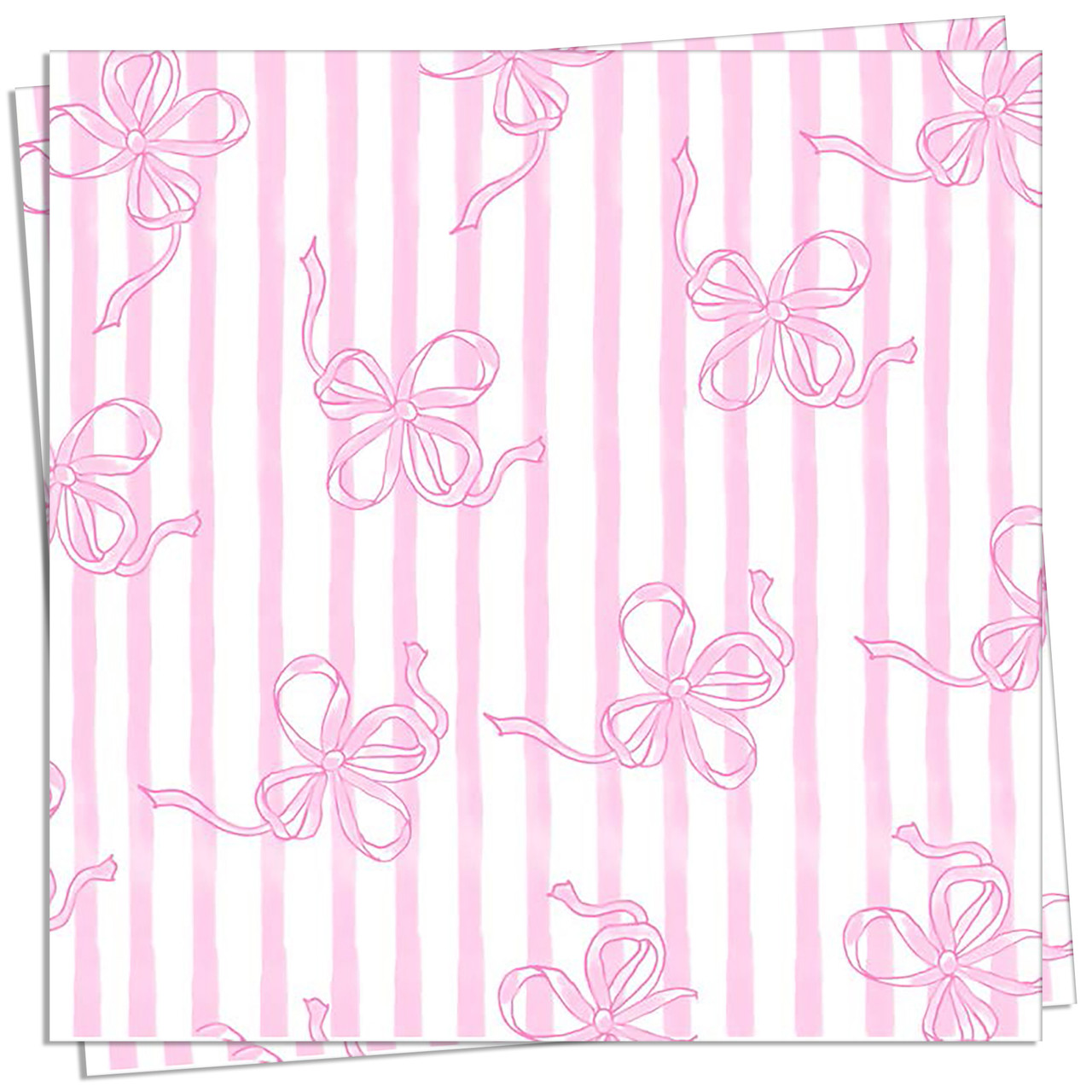 Ruban Rose Dinner Napkin - Pink stripes and subtle matching bows come together in a delicate pattern, perfect for enhancing your receptions and celebrations on sunny days.